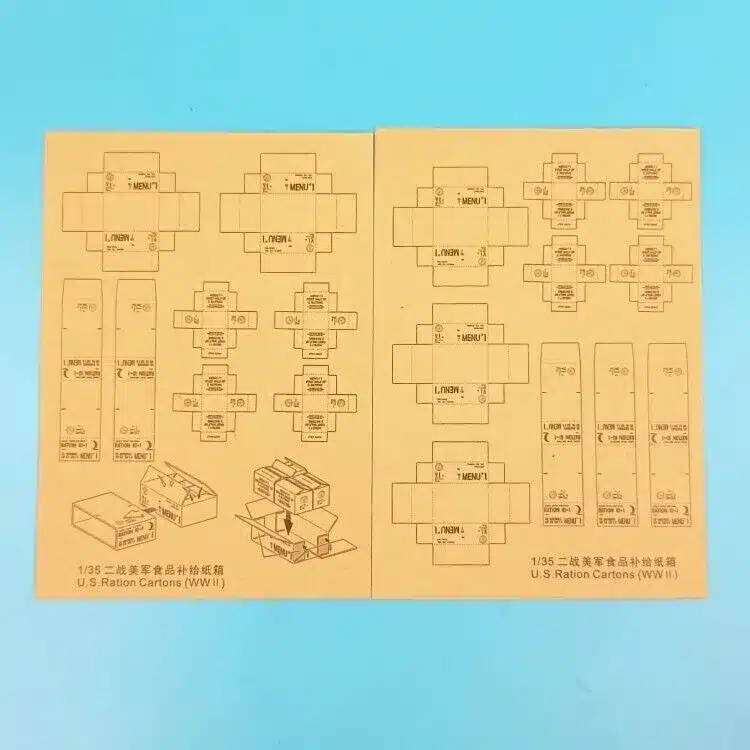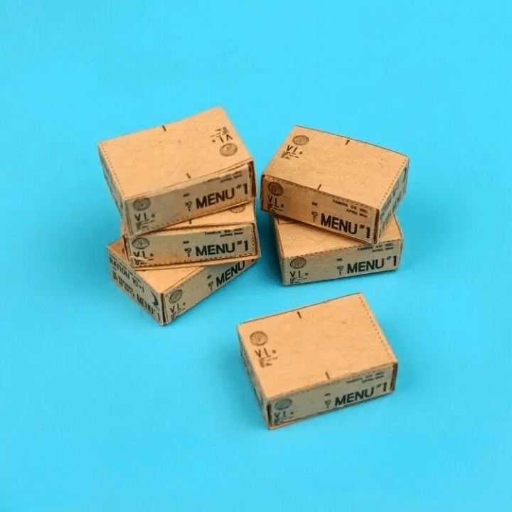 L’ensemble s’intègre parfaitement dans les dioramas de la Seconde Guerre mondiale ou des conflits modernes. Ces cartons de rations apportent cette densité visuelle qui fait la différence entre une maquette ordinaire et une reconstitution captivante. Ils se positionnent naturellement autour des véhicules blindés, dans les bases militaires ou les zones de combat pour créer des scènes dynamiques et crédibles.