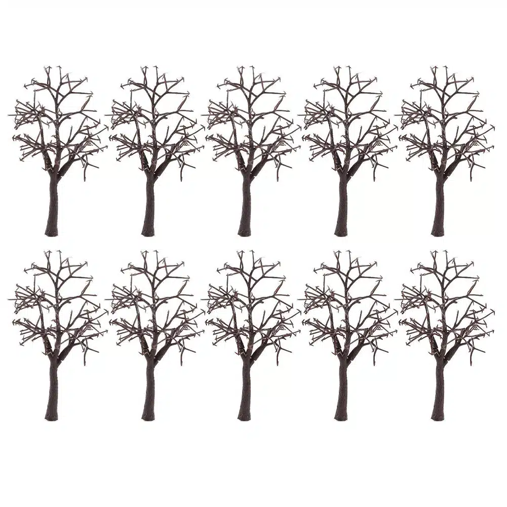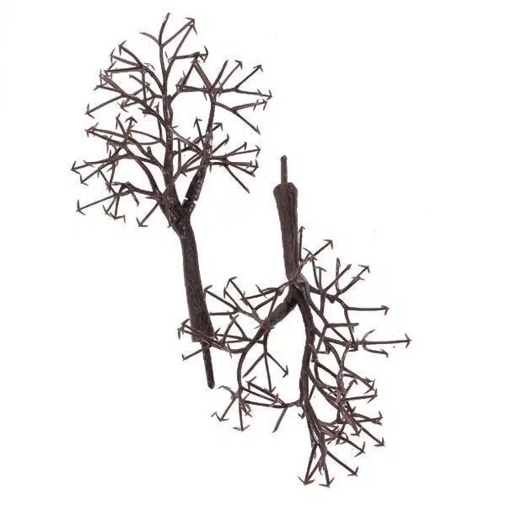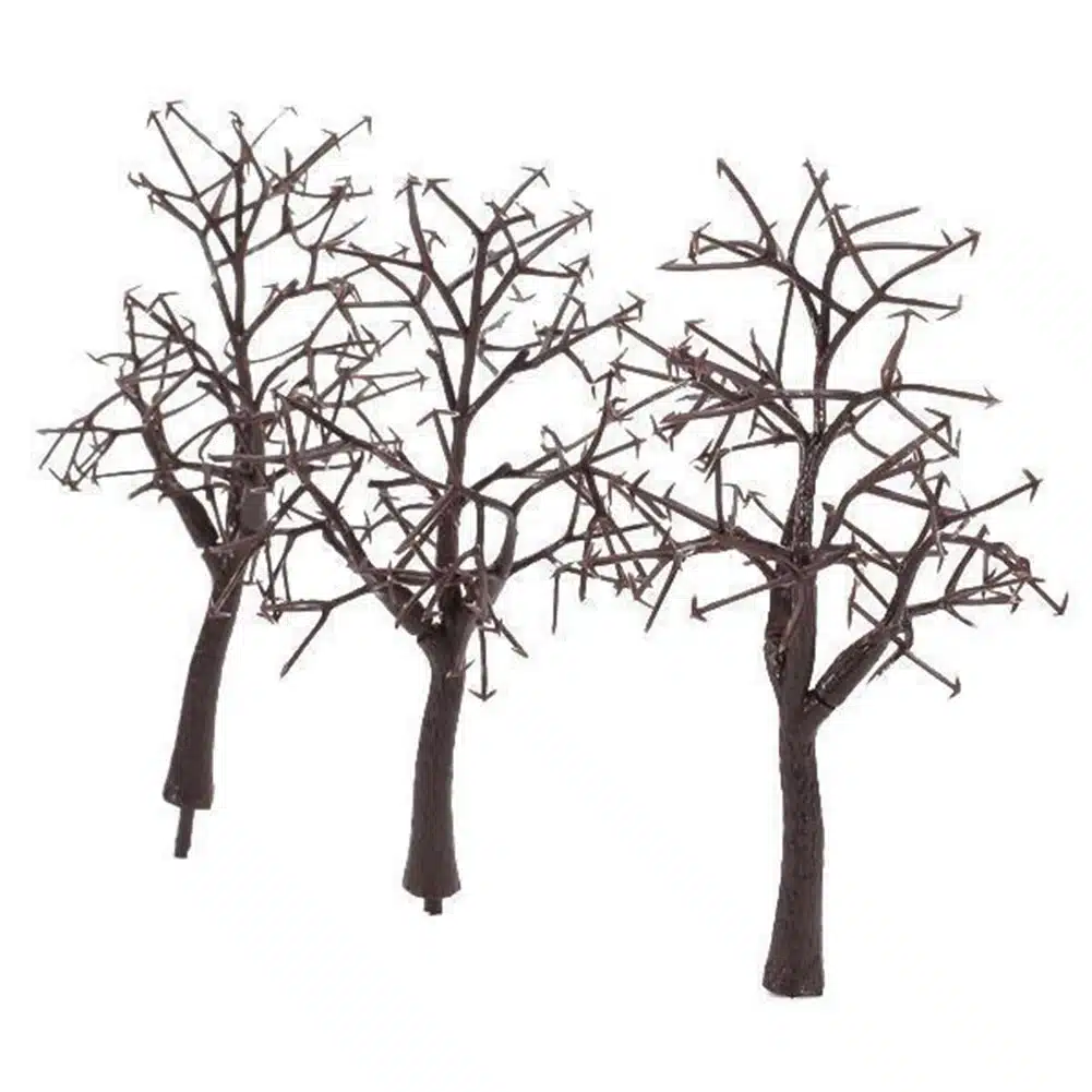 Le tronc de chaque arbre affiche une forme légèrement irrégulière qui imite parfaitement les variations naturelles des vrais arbres. Les branches nues s’étendent dans toutes les directions avec un aspect délicat et réaliste, sans feuillage, ce qui correspond exactement à l’apparence hivernale recherchée pour vos dioramas de saison froide.