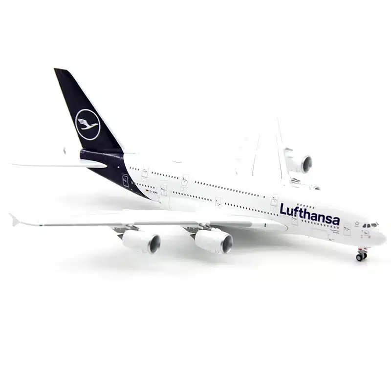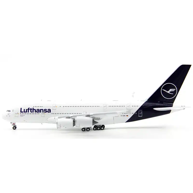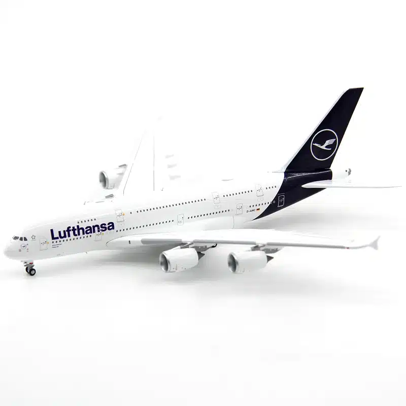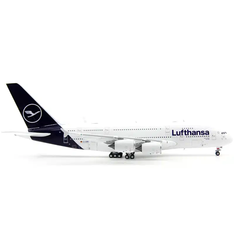 L’avion Lufthansa A380-800 D-AIMC est une réplique miniature fidèle du célèbre avion de ligne double pont. Sa reproduction soignée met en valeur la livrée blanche et bleue emblématique de la compagnie Lufthansa, avec ses marquages précis et ses finitions nettes.