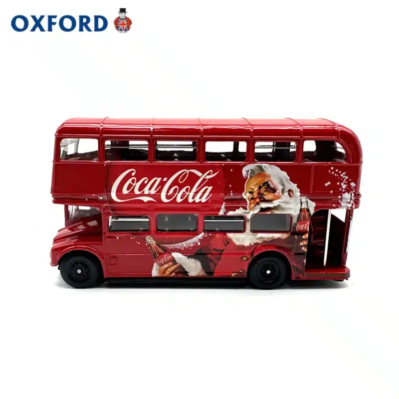 Cette réplique authentique du célèbre bus londonien à impériale arbore la livrée iconique rouge Coca-Cola avec des détails publicitaires vintage parfaitement reproduits.