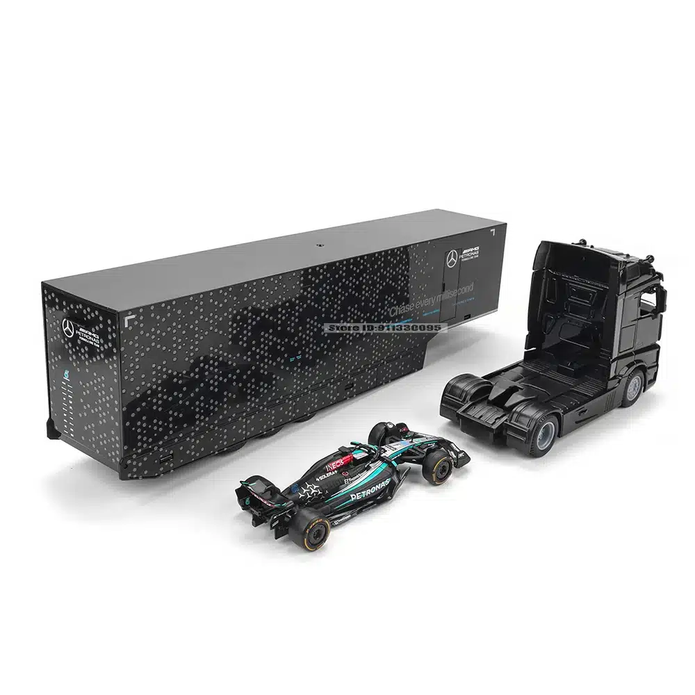 Ce camion MERCEDES-AMG F1 W15 HAULER SET reproduit fidèlement l’univers de la Formule 1 avec un niveau de détail impressionnant.