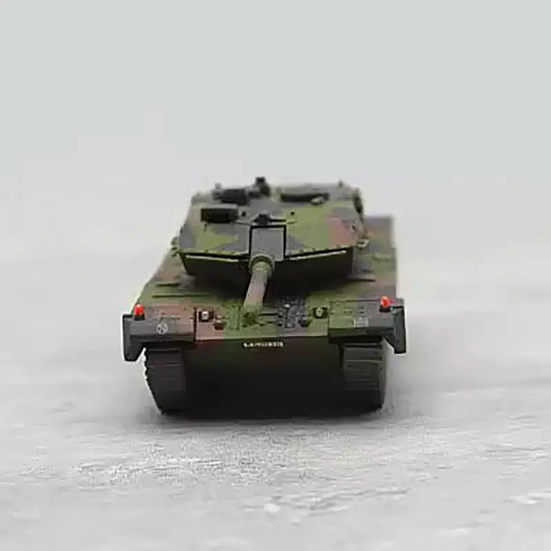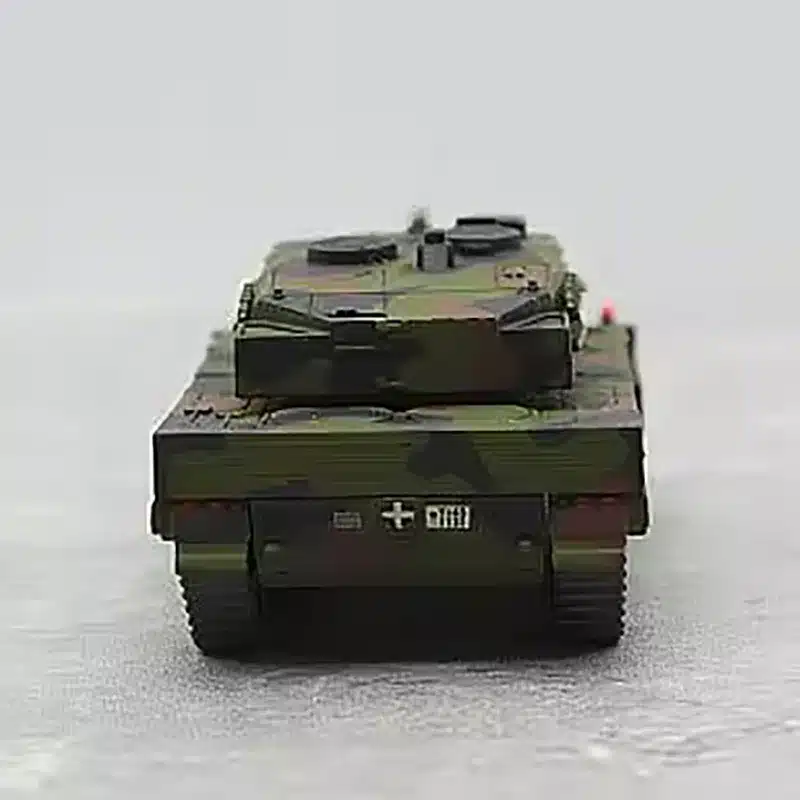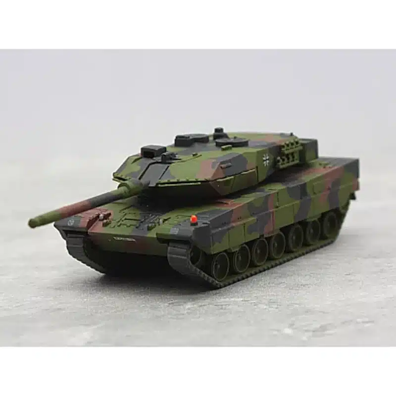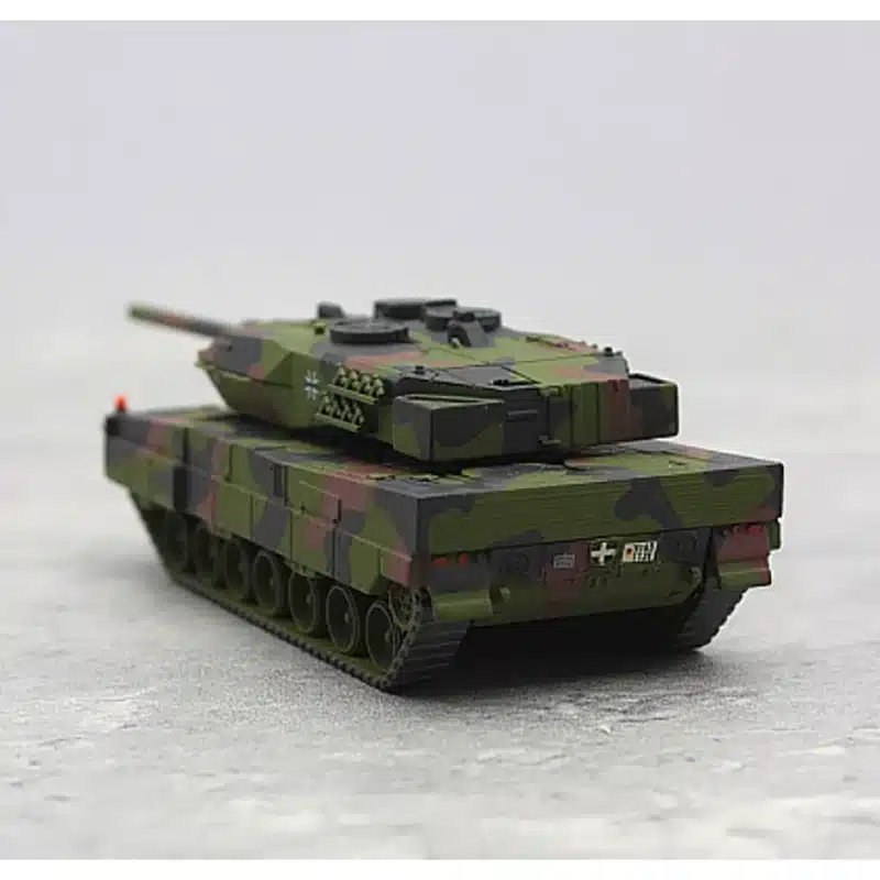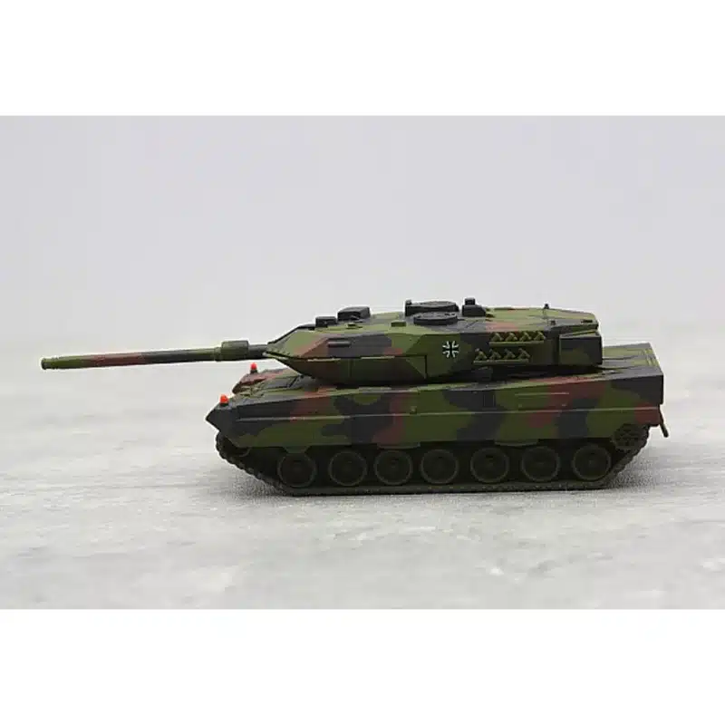 Ce char allemand Leopard 2A6 1/87 présente un camouflage militaire authentique aux tons verts et bruns qui reproduit fidèlement les livrées utilisées par l’armée allemande.