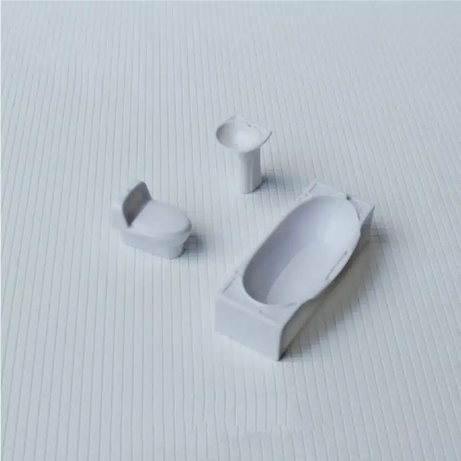 Cet ensemble de sanitaires pour diorama 1/50 permet de créer facilement une salle de bain crédible et bien proportionnée dans vos maquettes et décors miniatures. Il rassemble les éléments essentiels d’un intérieur réel, ce qui aide à renforcer le réalisme de vos scènes, même dans des espaces réduits.