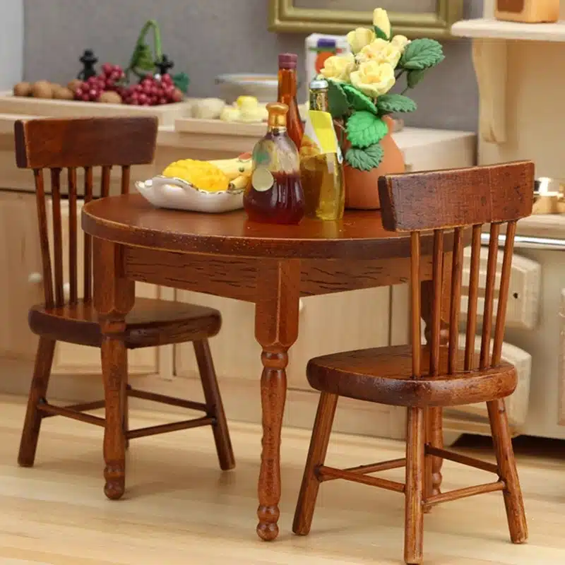 L’ensemble table à manger miniature 1/12 est parfait pour aménager une maison de poupées avec une scène chaleureuse et réaliste. Il se compose de 3 pièces : 1 table ronde et 2 chaises assorties, pensées pour recréer un véritable coin repas à petite échelle. Cet ensemble apporte immédiatement une ambiance conviviale et donne vie aux pièces comme la cuisine ou la salle à manger.