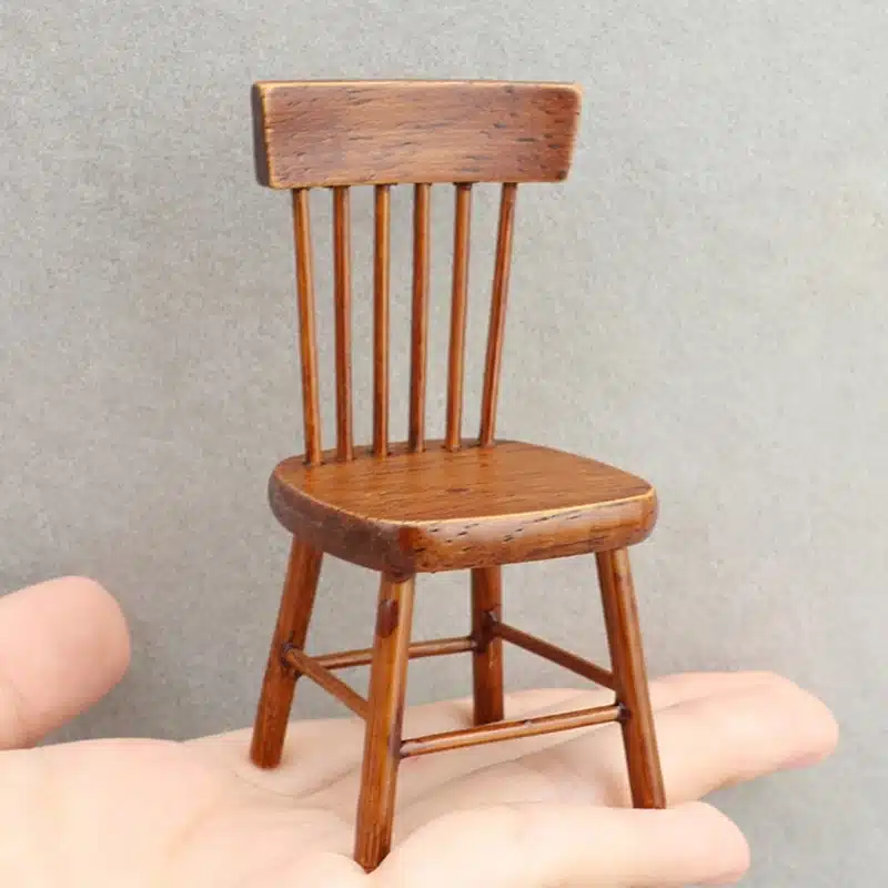 Chaque chaise miniature mesure environ 4,3 cm de largeur, 3,9 cm de profondeur et 8,4 cm de hauteur, des dimensions cohérentes pour l’échelle 1/12.