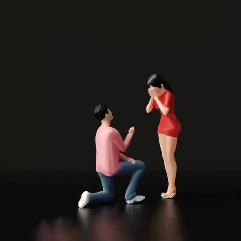 Cette figurine couple demande en mariage 1/64 pour diorama se distingue par ses finitions précises qui restituent fidèlement les plis des vêtements et les expressions corporelles. La gestuelle des personnages raconte instantanément l’histoire sans avoir besoin d’accessoires supplémentaires.