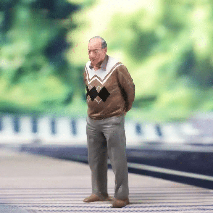 Les couleurs sobres et naturelles des tenues permettent de les intégrer facilement dans tout type de décor, qu’il s’agisse d’un diorama urbain, d’un trottoir ou d’un parc miniature. Ces figurines hommes seniors 1/64 apportent une touche humaine et vivante à vos créations, parfaites pour enrichir vos maquettes avec simplicité et authenticité.