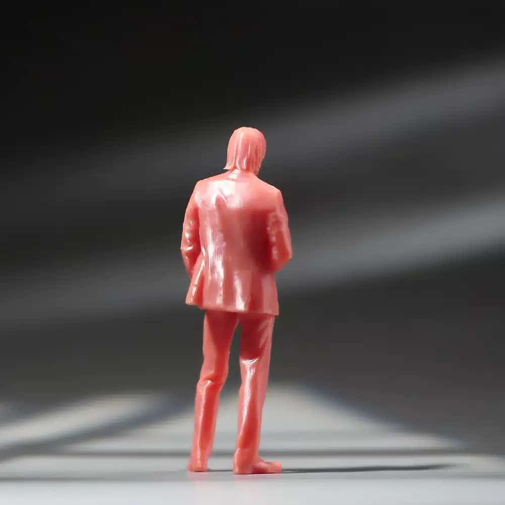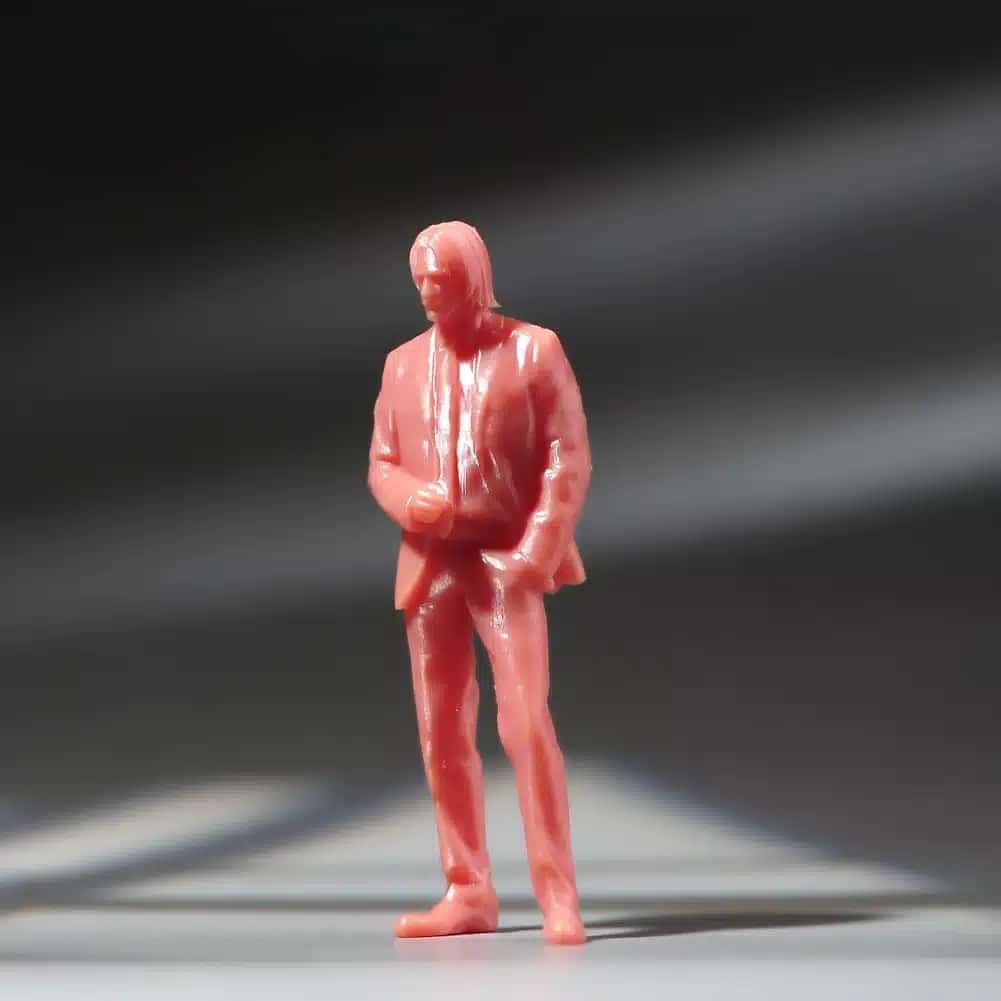 Cette figurine miniature de scène de film représentant un tueur en costume reprend avec précision l’allure froide et maîtrisée des grands personnages de thriller. Le costume noir est moulé avec une coupe nette, les plis sont bien définis et la cravate fine ajoute une touche de sérieux qui renforce l’allure professionnelle du personnage. Même sans peinture, les volumes du visage, la structure des cheveux et la posture parfaitement droite laissent déjà apparaître tout le caractère du modèle original.