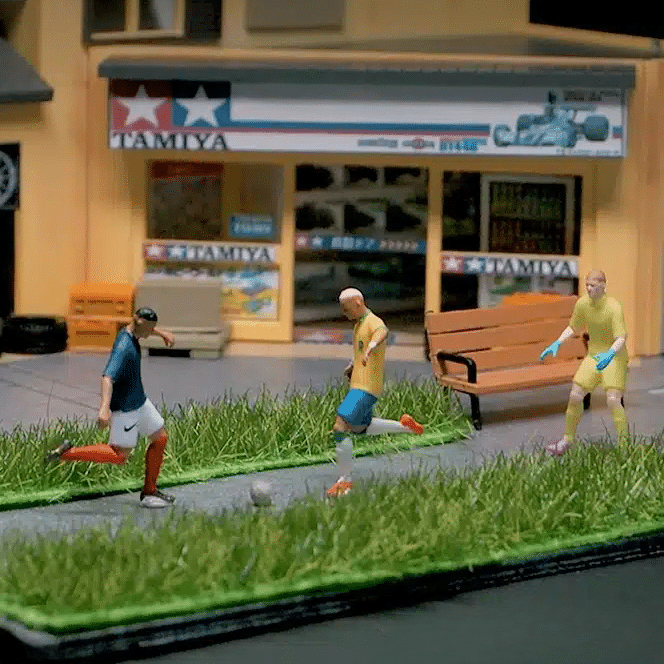Chaque joueur possède une tenue différente, ce qui aide à créer une équipe variée ou plusieurs clubs distincts dans un même décor. Ces figurines s’intègrent très bien autour d’un but, le long d’une ligne de touche ou sur une place décorée façon “fan zone”, et ajoutent une touche de vie à vos projets de modélisme.