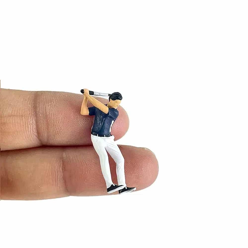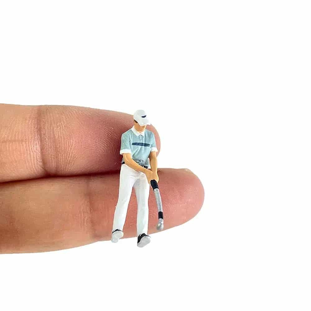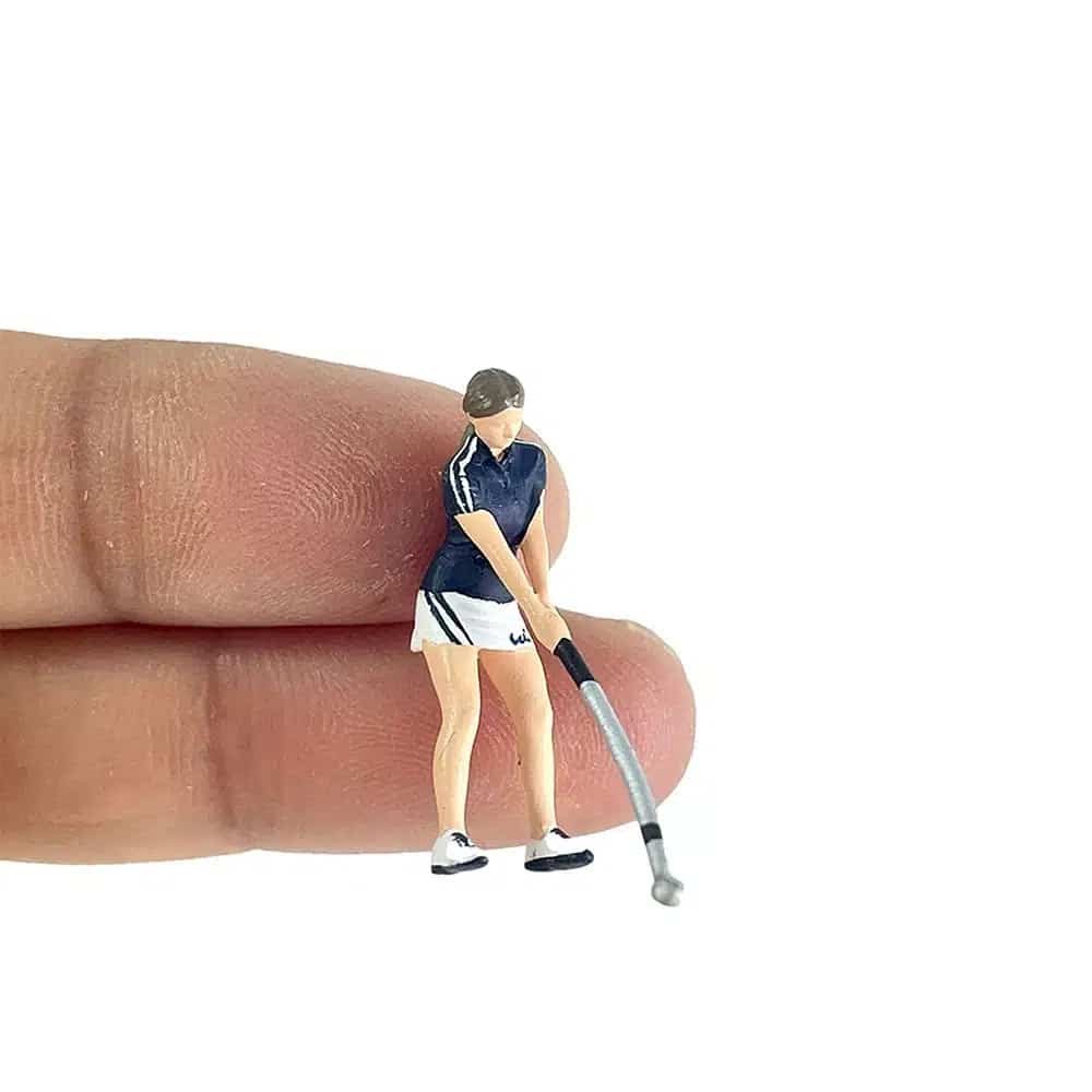 Les vêtements détaillés, les clubs de golf fidèlement reproduits et la précision des couleurs renforcent le réalisme. Les figurines sont pensées pour s’intégrer directement dans vos décors extérieurs : parcours, zones d’entraînement, bordure de green ou scènes sportives.