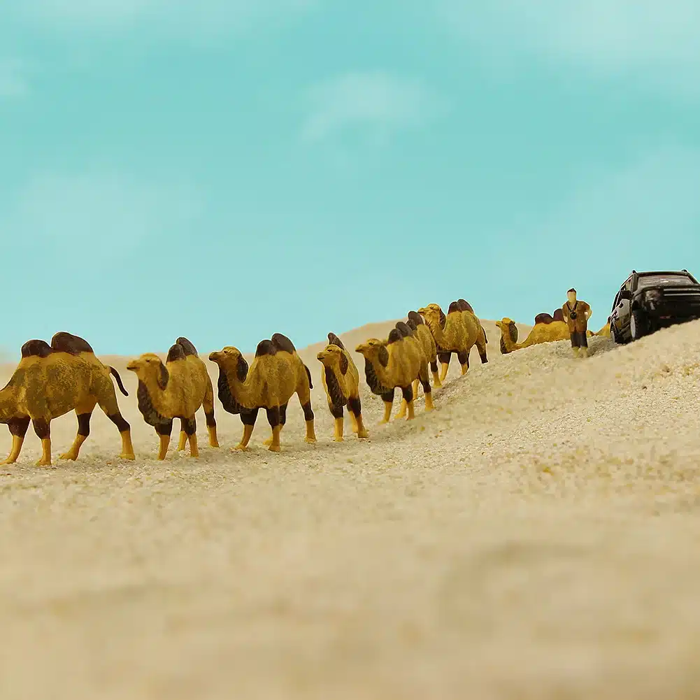 Ces figurines de dromadaires à l’échelle 1/87 transforment instantanément vos maquettes en véritables tableaux vivants du Moyen-Orient ou d’Afrique du Nord, que vous créiez une oasis, un campement bédouin ou une route commerciale historique.