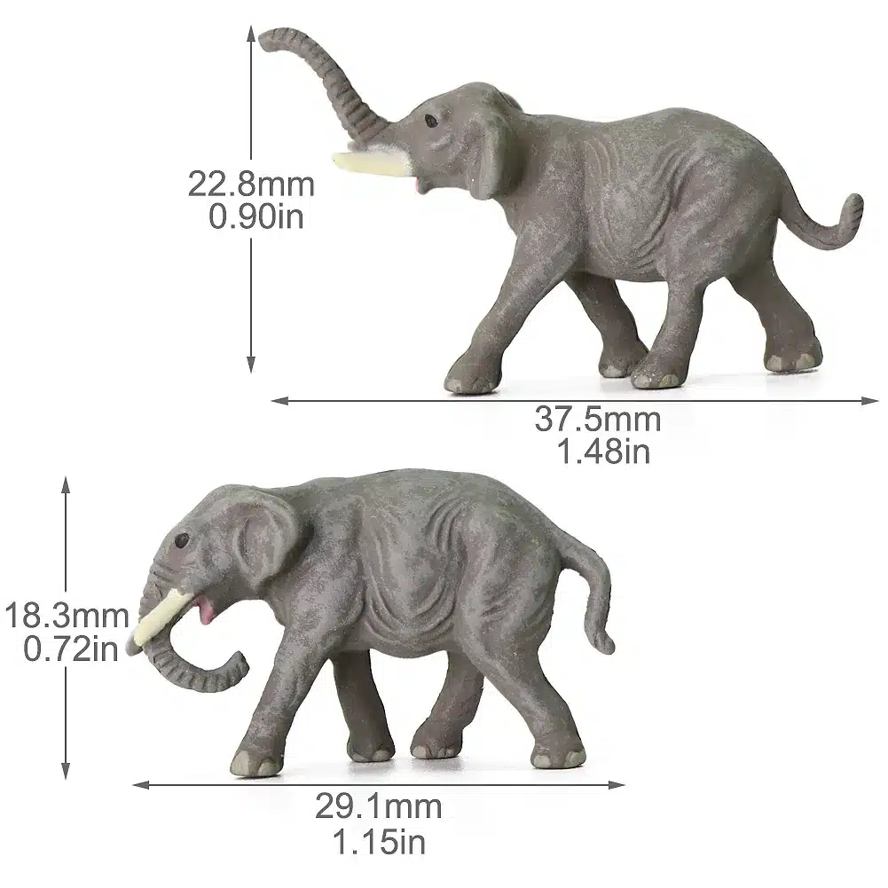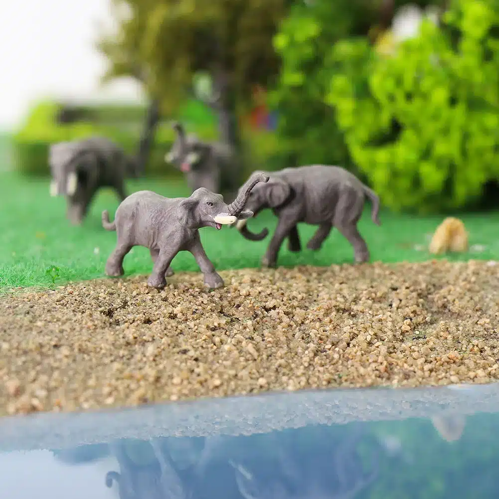 Les postures variées donnent vie à vos dioramas : certains éléphants lèvent leur trompe vers le ciel, d’autres la dirigent vers le sol dans une attitude de recherche de nourriture.