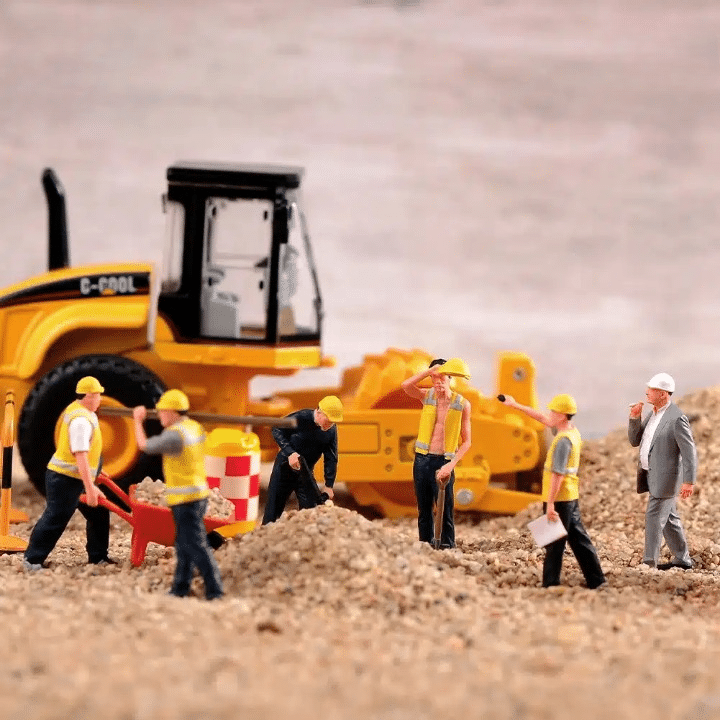 Ces figurines miniatures représentant un chef de chantier et des ouvriers à l’échelle 1/50 apportent une authenticité saisissante à vos dioramas de construction.