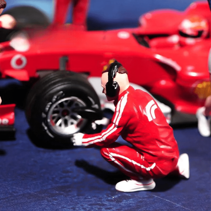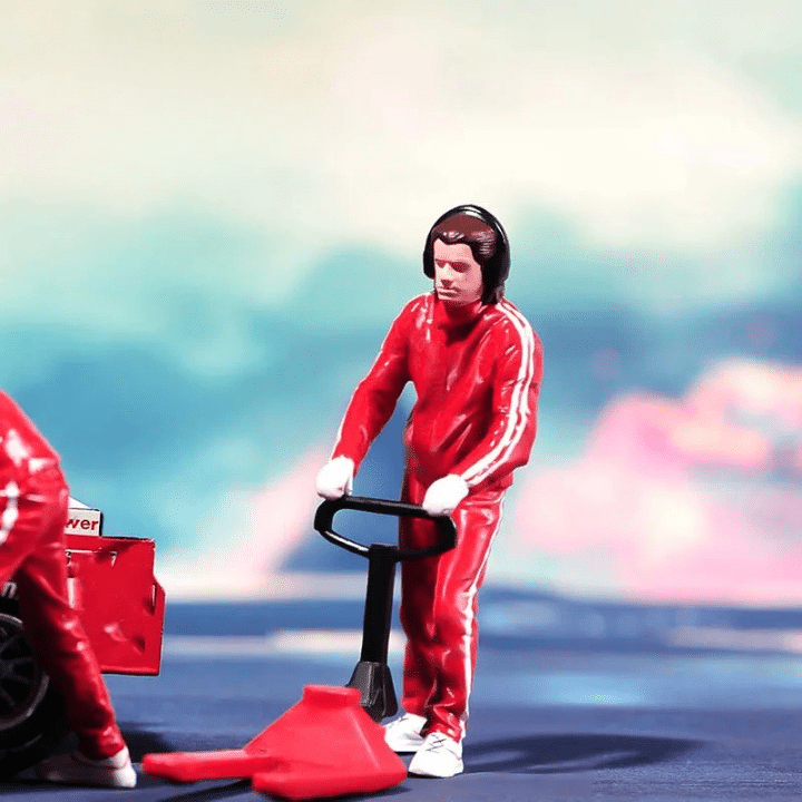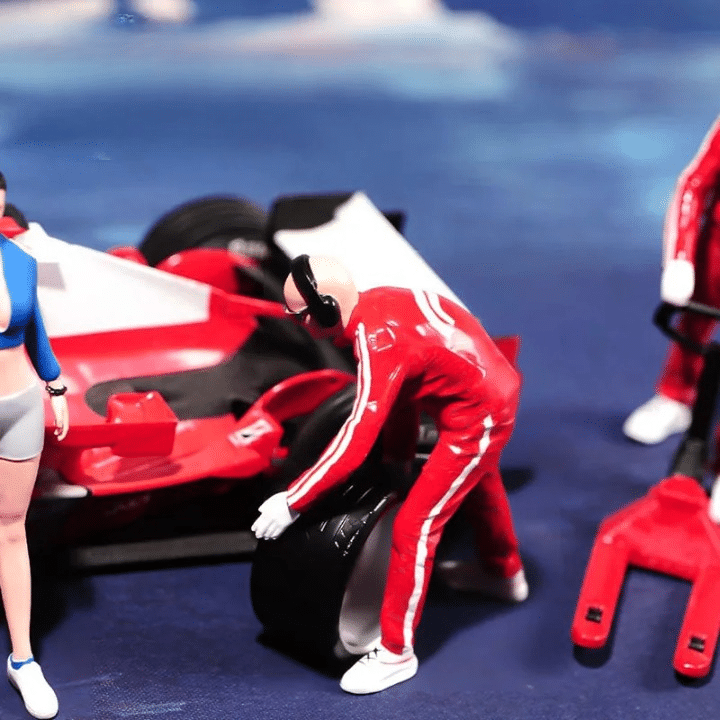 Ces figurines miniatures course automobile 1/24 reproduisent avec fidélité l’ambiance intense d’un circuit de Formule 1. Chaque personnage arbore une combinaison rouge distinctive qui capture l’esprit des équipes de course professionnelles.