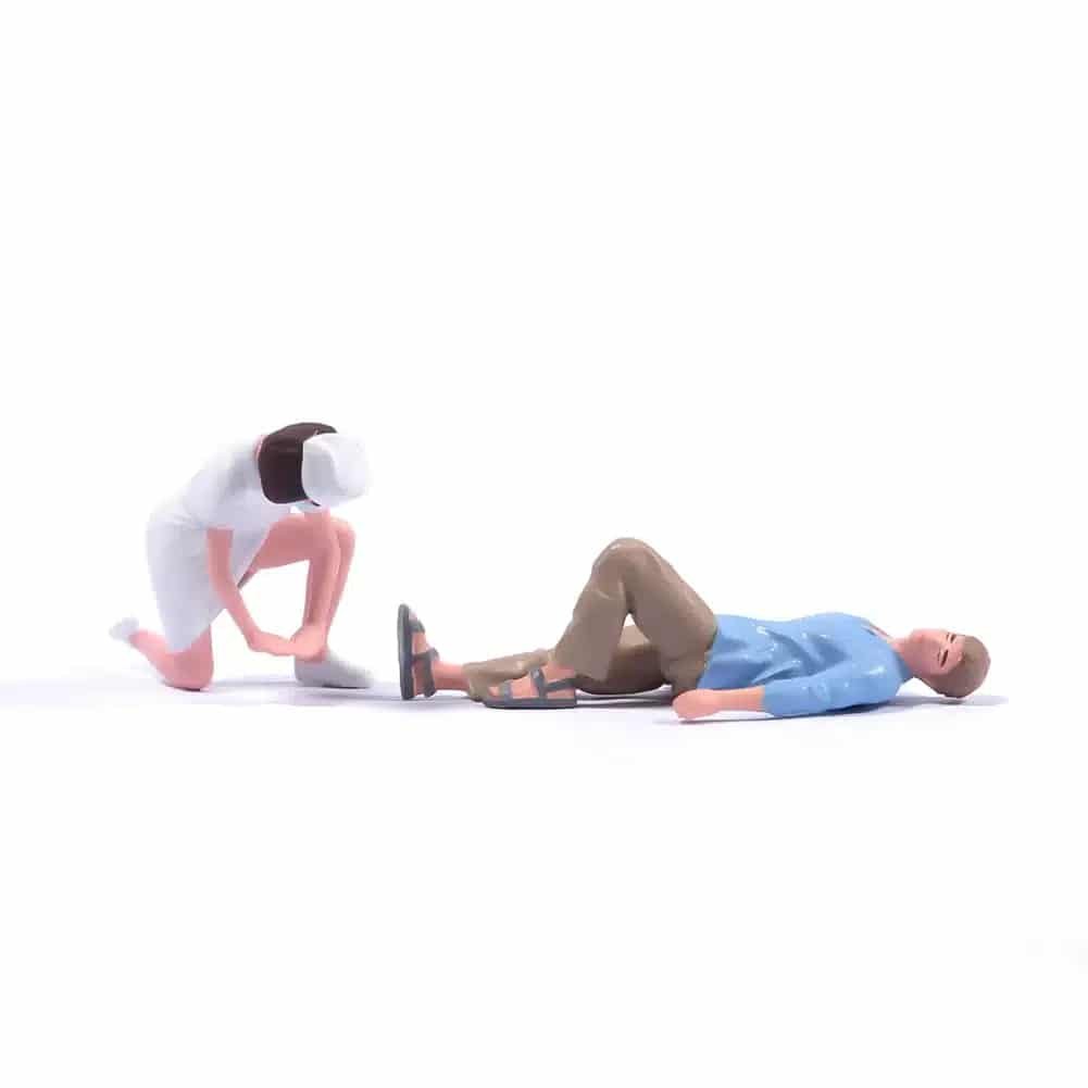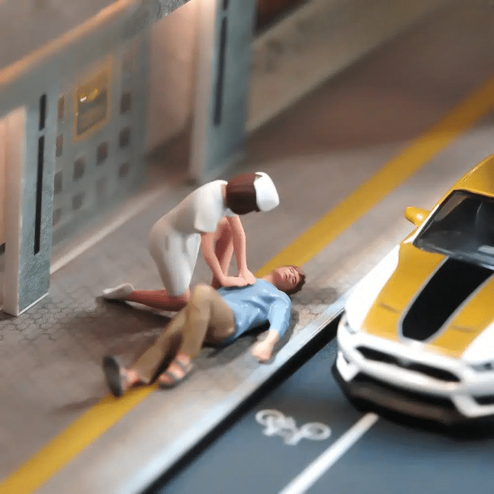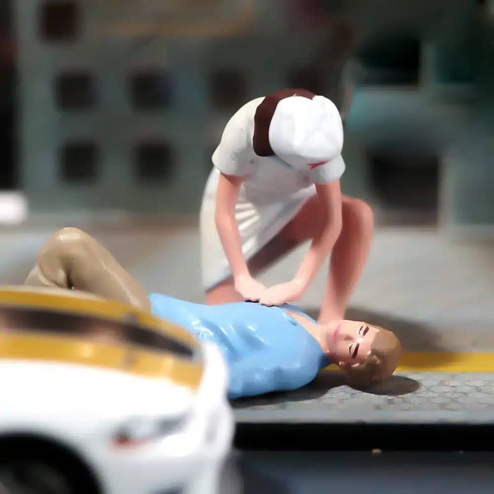 Ces figurines représentant une scène d’action de police avec suspects et secours 1/43 donne tout de suite du rythme à un diorama, même avec peu d’éléments autour.