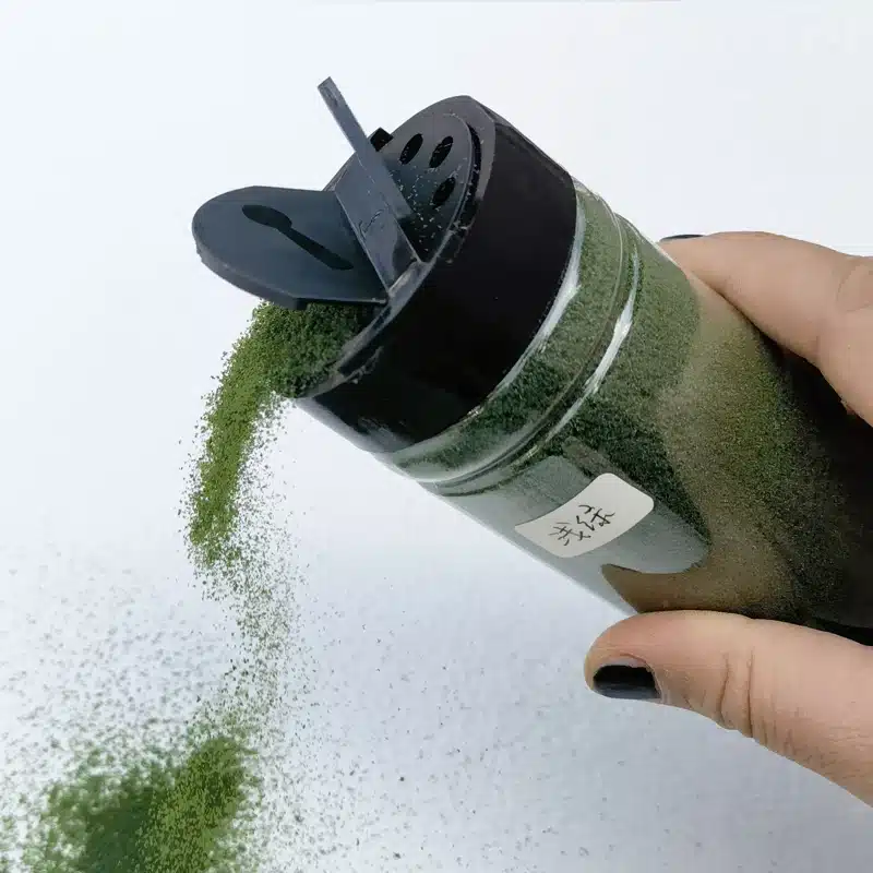 L’application se fait simplement en saupoudrant le flocage herbe maquette sur la colle fraîche de vos décors. Les particules se dressent naturellement pour simuler l’effet de brins d’herbe qui poussent du sol. Cette technique apporte une dimension tridimensionnelle à vos paysages miniatures.