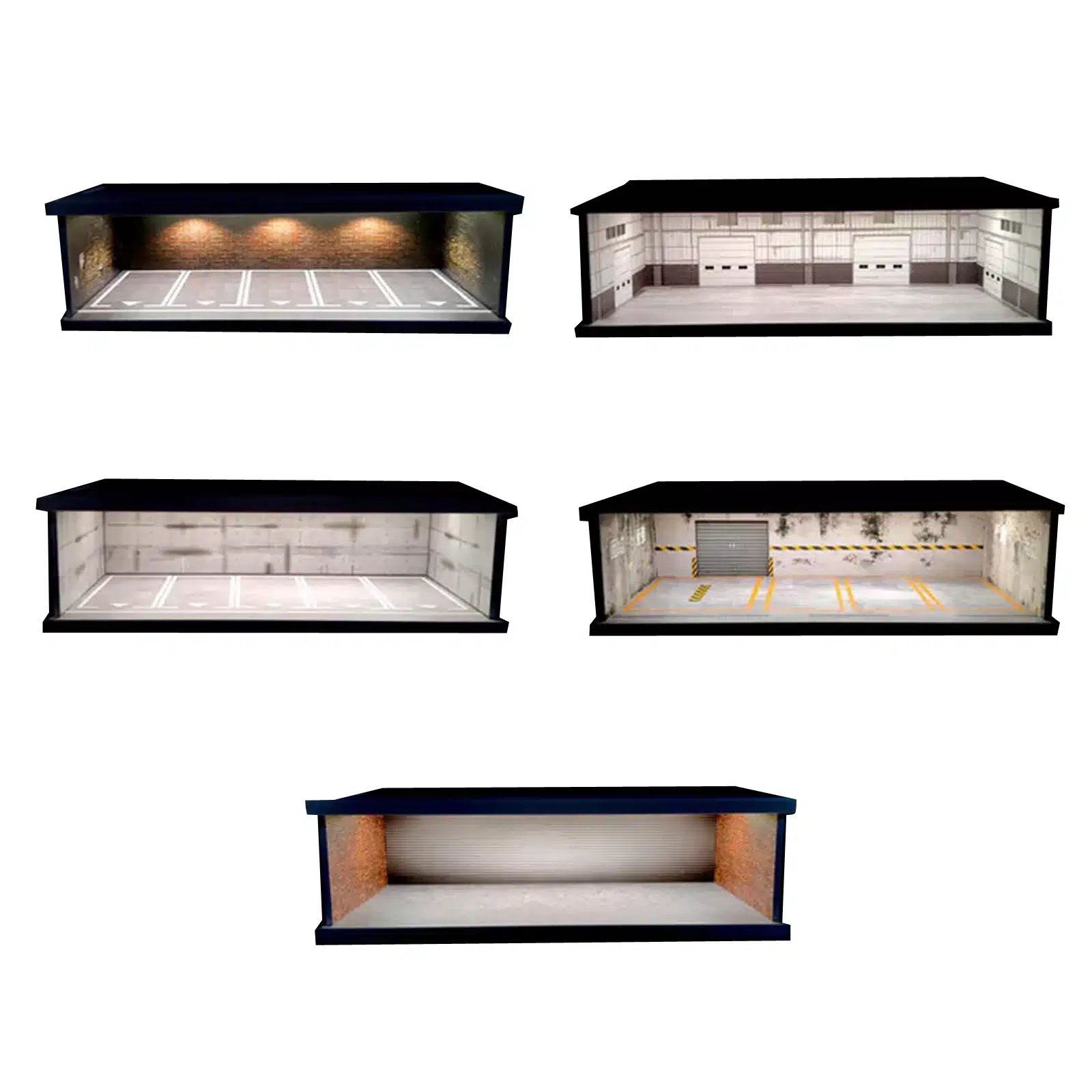 Les proportions respectent l’architecture réelle des garages automobiles, avec une hauteur suffisante pour accueillir les véhicules miniatures.