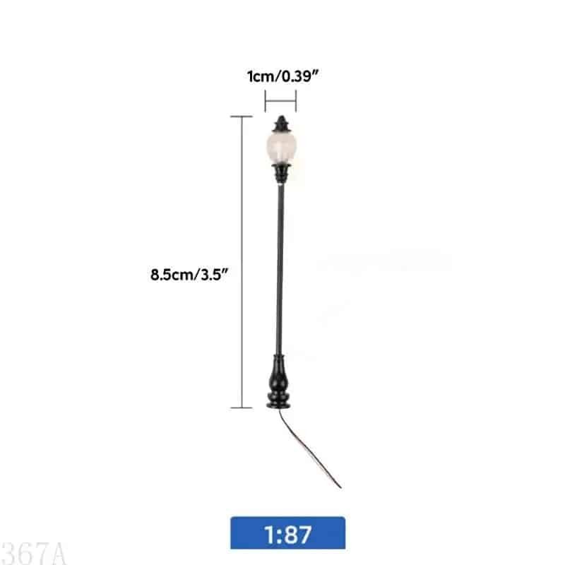 Ce lampadaire ho diffuse une lumière sobre, idéale pour créer une ambiance nocturne romantique dans vos scènes miniatures.