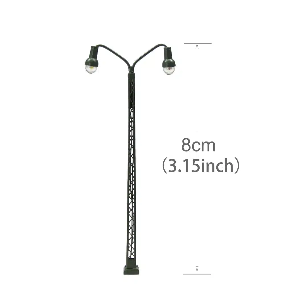 Ces lampadaires maquette échelle N reproduisent avec fidélité l’éclairage urbain moderne que l’on retrouve dans nos villes. Chaque lampadaire présente une structure élancée et réaliste avec un mât vertical orné d’un motif décoratif en treillis qui apporte une touche d’authenticité remarquable.