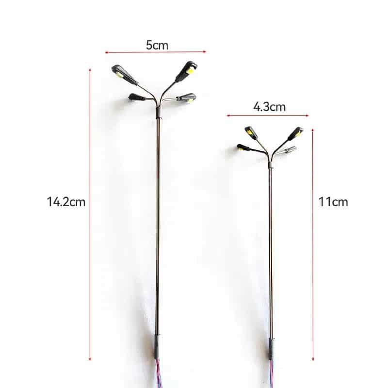 Ce lampadaire à quatre têtes est un excellent choix pour celles et ceux qui souhaitent sortir des éclairages classiques et apporter une touche plus structurée à leurs scènes de ville. Facile à intégrer, original et efficace, il complète parfaitement un décor urbain miniature tout en renforçant le réalisme global.
