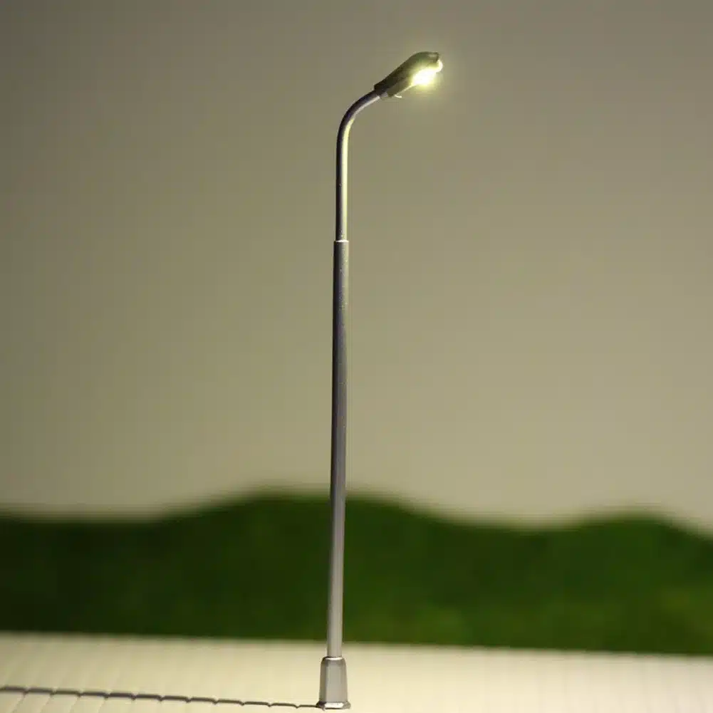 Ces lampadaires pour maquette se distinguent par leur aspect visuel convaincant. La courbure du bras d’éclairage suit une ligne naturelle qui donne une impression de mouvement à vos décors urbains. Cette forme caractéristique apporte une dimension vivante à vos créations miniatures.