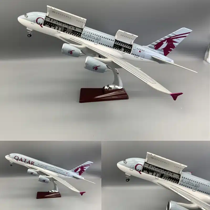 Cette maquette d’avion Airbus A380 Qatar Airways est une pièce exceptionnelle pour les passionnés d’aéronautique et de modélisme. Reproduite avec précision à une échelle réaliste, elle permet de recréer fidèlement l’un des avions les plus emblématiques du transport aérien.