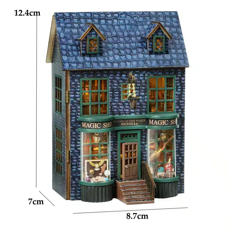 Cette maquette de boutique de magie reproduit avec précision l’atmosphère mystérieuse d’un magasin d’objets enchantés.