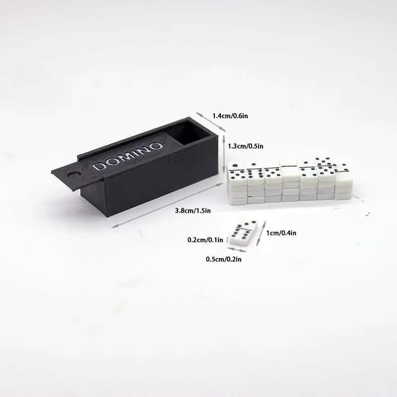 Cette maquette de dominos à l’échelle 1/12 reproduit fidèlement un jeu de société classique avec un réalisme saisissant. Les dominos blancs aux points noirs présentent des détails fins et nets, chaque point étant parfaitement délimité et contrasté. La boîte noire rectangulaire accompagne l’ensemble et ajoute une touche d’authenticité remarquable à cette miniature.