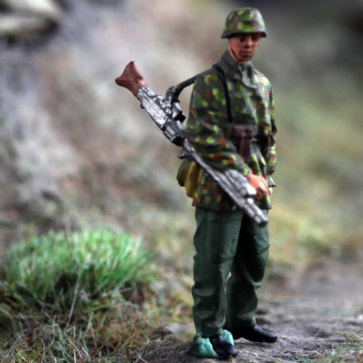 Les poses dynamiques et crédibles de cette maquette soldat allemand témoignent d’un travail de sculpture expert.