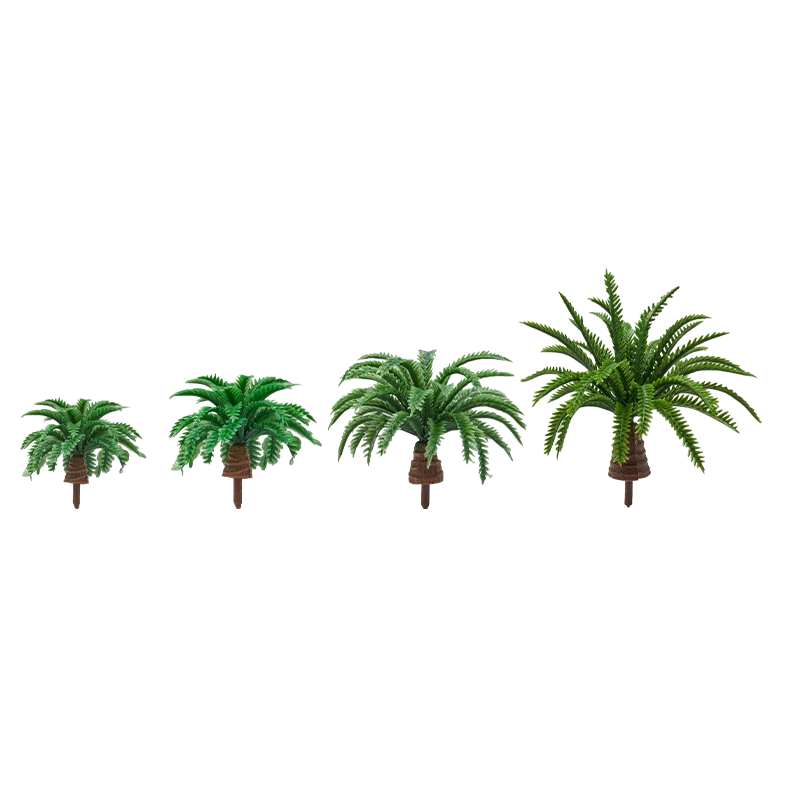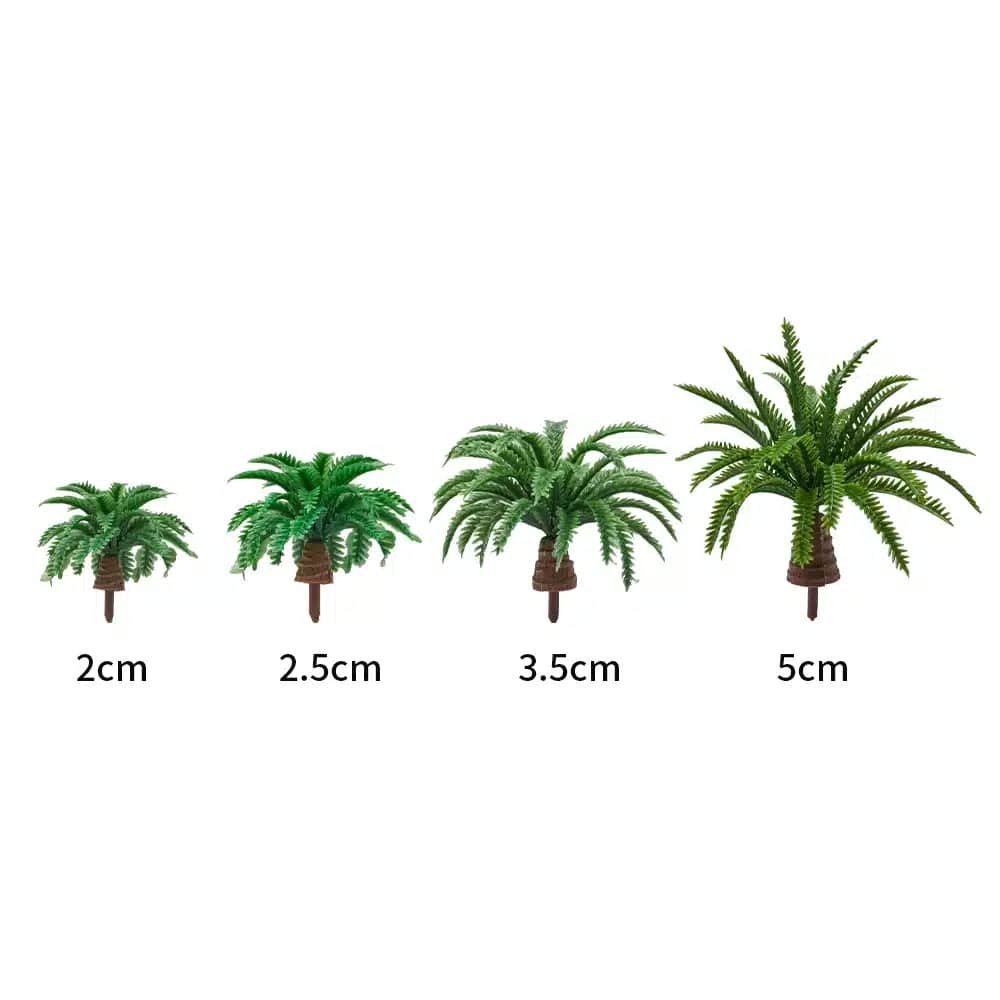 Chaque lot contient 10 palmiers miniatures, avec la possibilité de choisir parmi 4 tailles différentes : 2 cm, 2,5 cm, 3,5 cm ou 5 cm