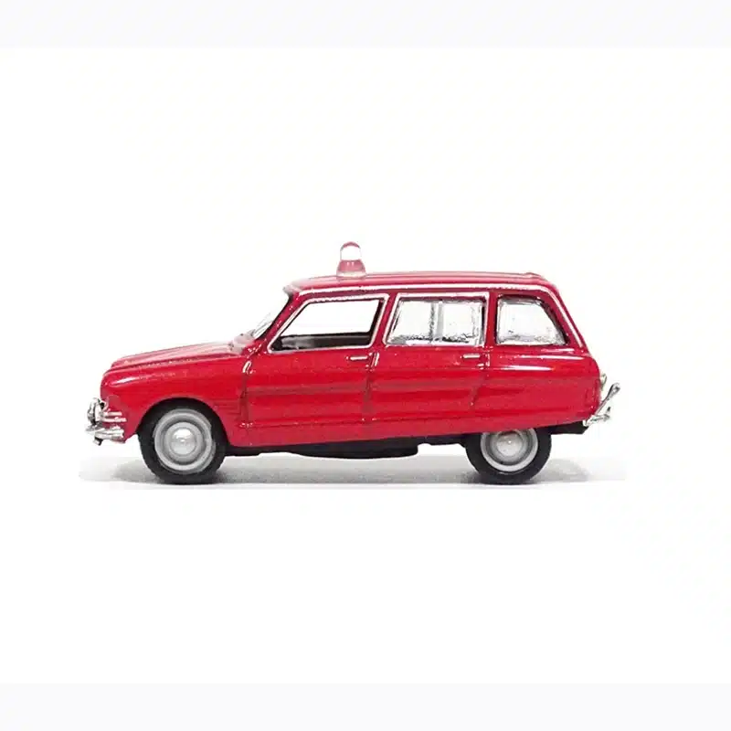 Cette miniature citroen ami 1968 1/87 présente une qualité de moulage soignée sans bavures visibles, témoignant d’un processus de fabrication rigoureux qui garantit une intégration parfaite dans vos dioramas et maquettes.