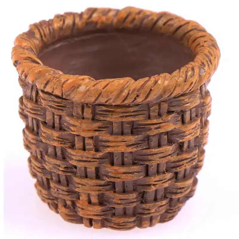 La qualité de moulage se remarque dans la netteté des détails du tressage, sans bavures ni défauts visibles. Ce panier miniature apporte une touche d’authenticité campagnarde qui enrichit l’atmosphère de vos créations en leur donnant un caractère chaleureux et vécu.