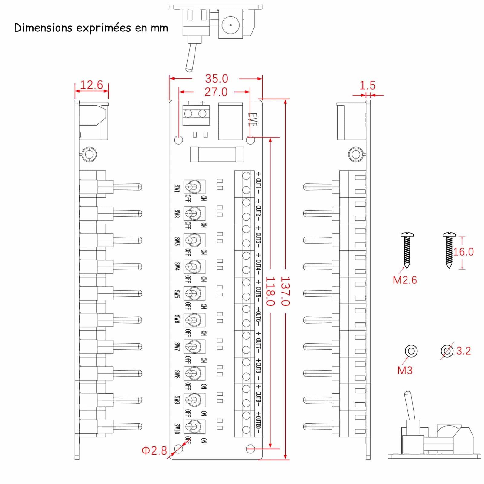 Ce panneau commande électrique 10 canaux reproduit avec précision l’aspect d’un vrai tableau de contrôle industriel.