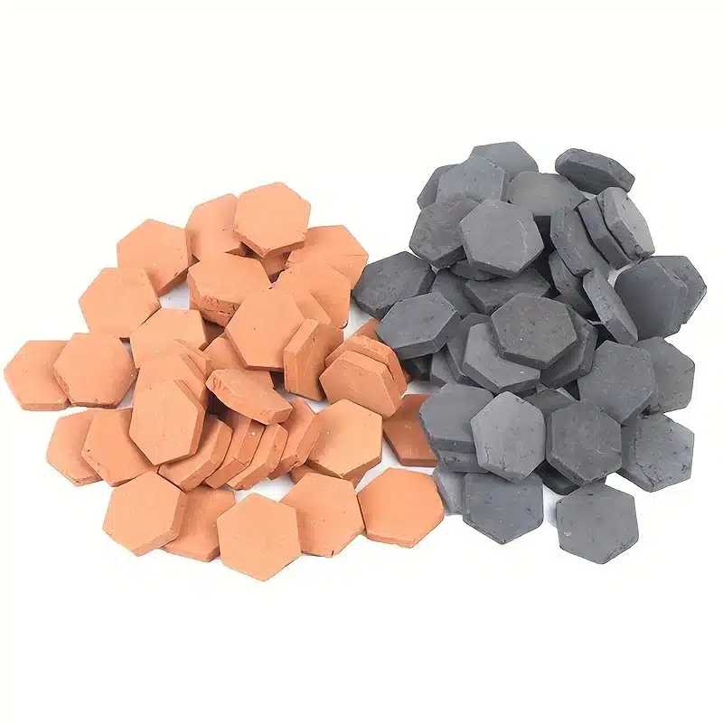 Ces pavés hexagonaux miniatures en argile apportent un réalisme immédiat à tes dioramas, maquettes ou maisons de poupées. Leur texture naturelle et leurs deux couleurs disponibles – rouge terre cuite et gris ardoise – permettent de créer des sols contrastés, des allées, des terrasses ou des trottoirs à l’effet très réaliste. Chaque pavé mesure environ 9 mm de large, une taille parfaite pour les échelles HO, 1/12 ou 1/18 selon le type de décor.
