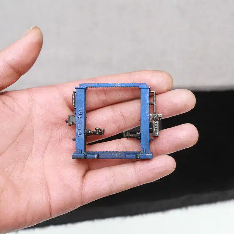 Ce modèle est proposé en résine, un matériau qui permet d’obtenir des formes nettes, des détails précis et une excellente tenue dans le temps. Les deux colonnes sont bien proportionnées, avec des bras de levage visibles, ce qui renforce immédiatement le réalisme de la scène, même à cette petite échelle 1/64.