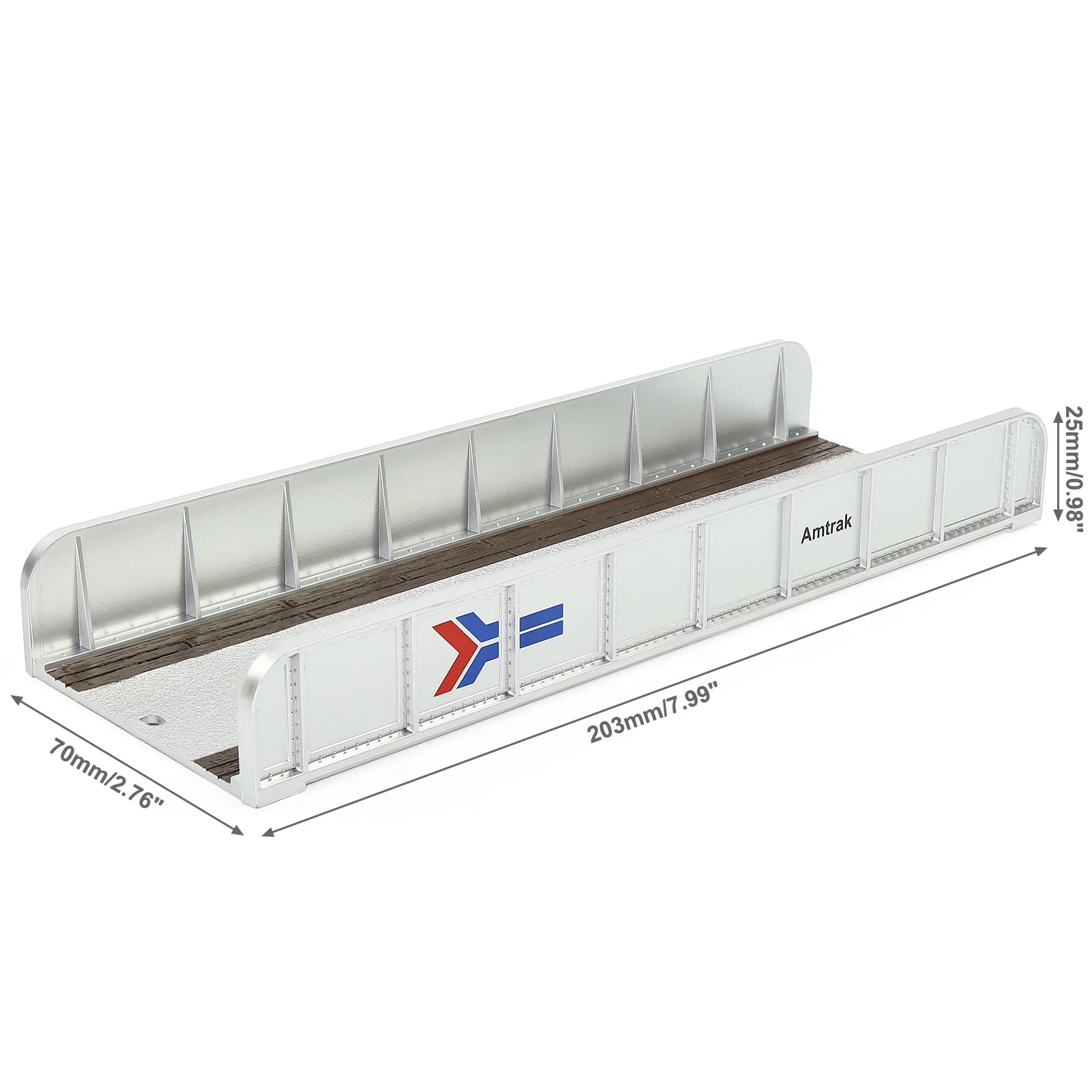 Ses dimensions d’environ 20,3 x 7 x 2,5 cm offrent une longueur suffisante pour créer un point visuel fort, sans encombrer excessivement l’espace. Il s’adapte naturellement aux réseaux et dioramas à l’échelle HO (1/87).