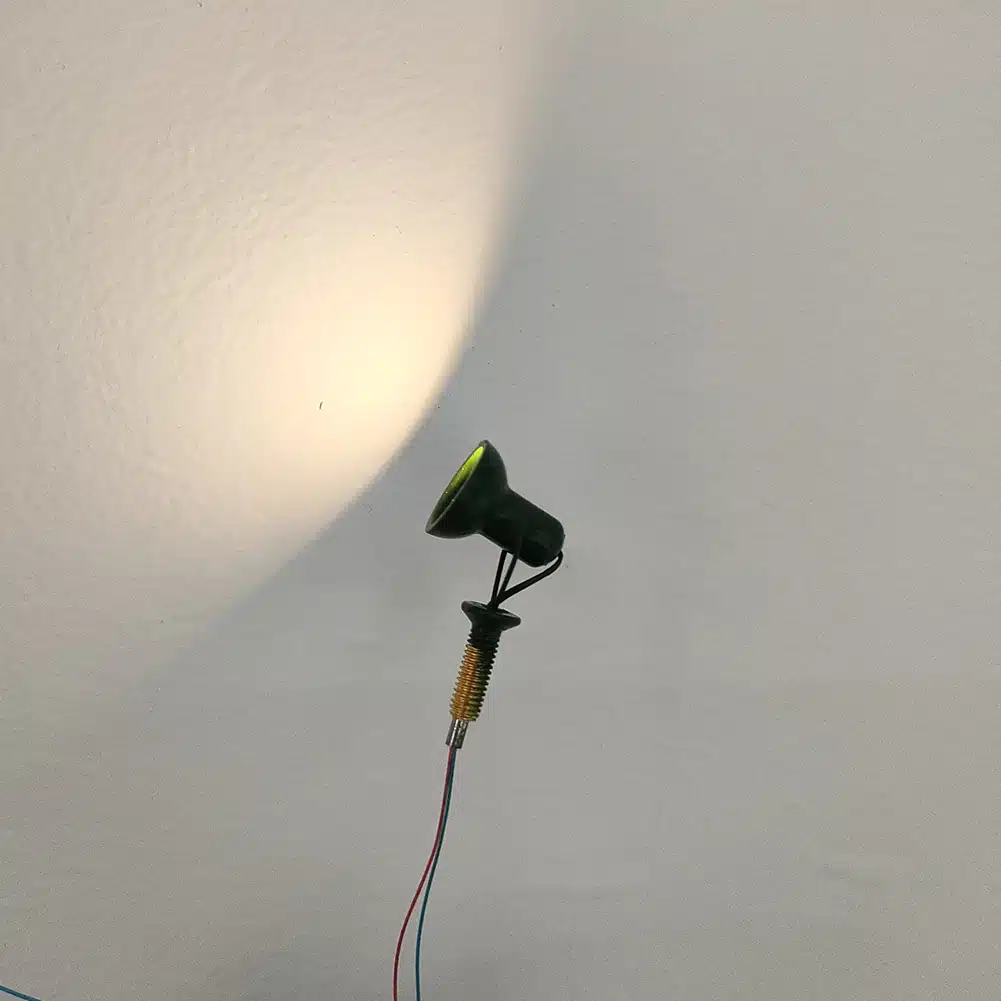 Le lot de 5 projecteurs offre plusieurs possibilités : éclairer une allée, souligner une façade, baliser un chemin ou répartir des points lumineux dans une scène plus large. Ces projecteurs conviennent aussi bien aux dioramas qu’aux maquettes architecturales ou aux maisons de poupées, en apportant une vraie ambiance sans surcharger le décor.