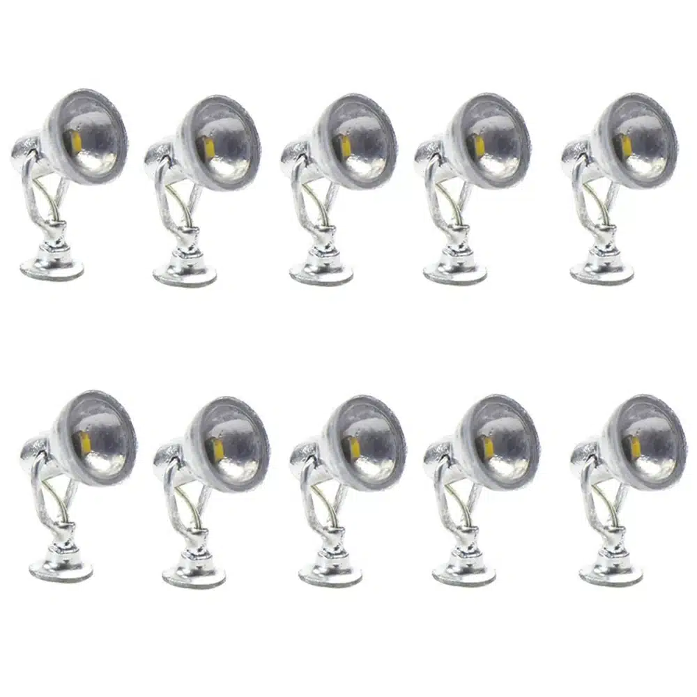 Les projecteurs gris miniatures pour maquette (lot de 5 ou 10) offrent une solution simple pour créer un éclairage propre, orientable et cohérent, sans compliquer la mise en place de ton décor.