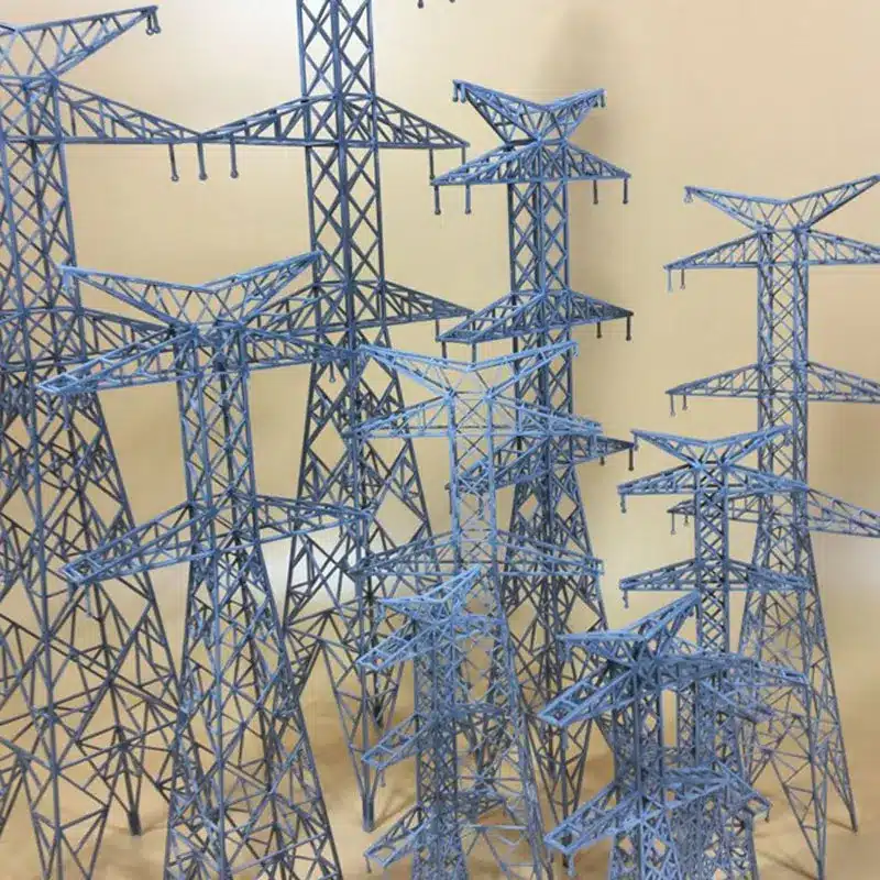 L’aspect général de ces miniatures évoque immédiatement les infrastructures électriques que l’on observe dans la réalité.