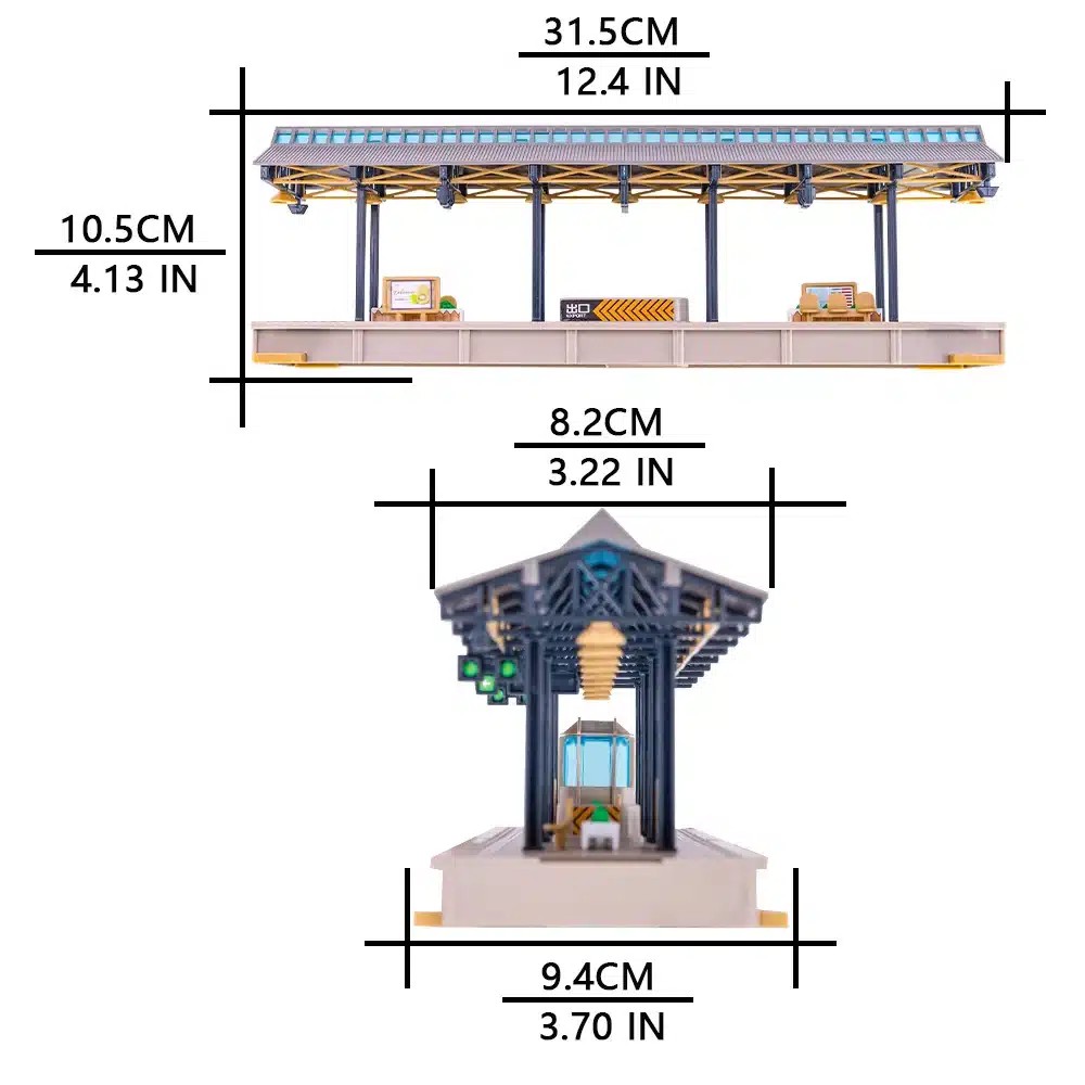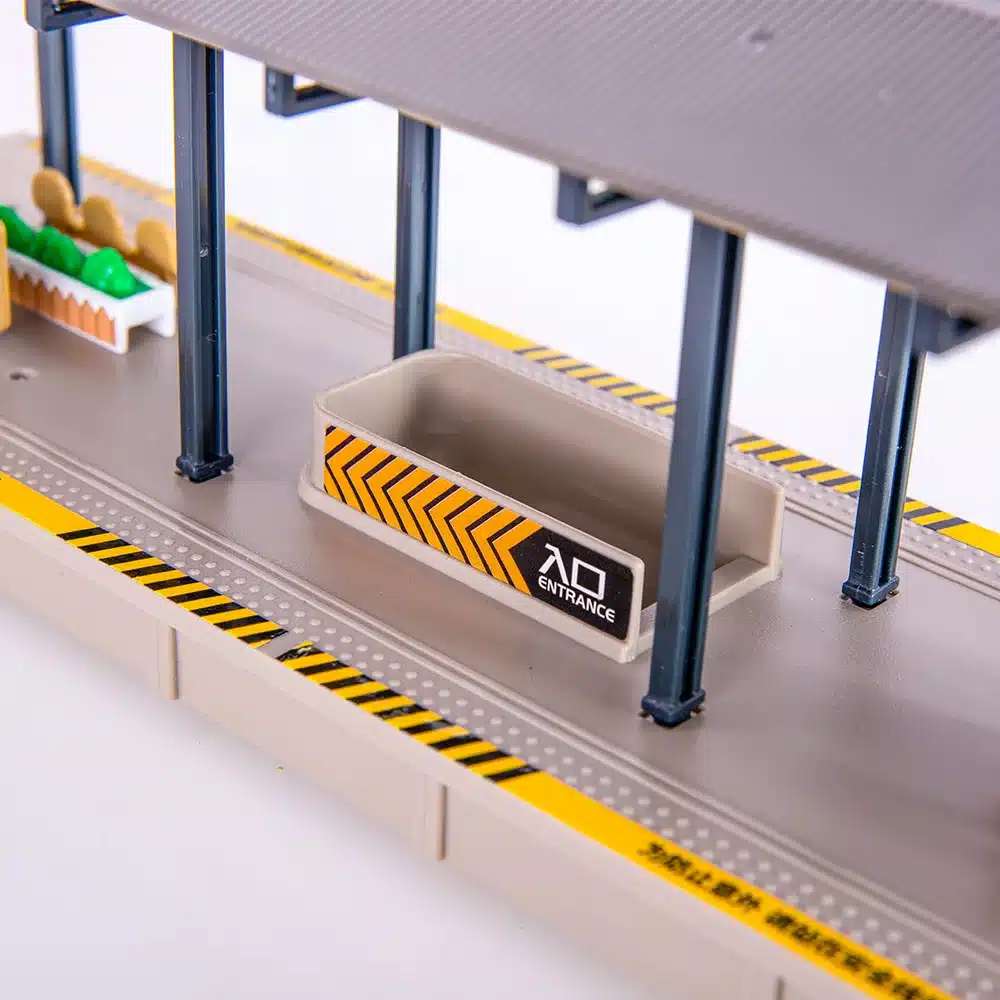 Avec des figurines, cela donnent immédiatement vie à votre quai de gare diorama HO. Positionnées naturellement sur le quai, elles simulent l’attente des voyageurs avec des postures variées et crédibles. Cette animation humaine transforme votre maquette en véritable scène de vie ferroviaire. Le quai surélevé présente une finition lisse et uniforme qui contraste harmonieusement avec la structure métallique de la marquise.