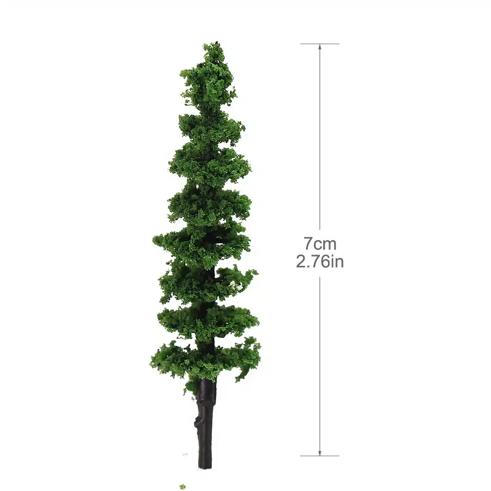 Ces sapins modélisme ferroviaire reproduisent fidèlement l’aspect naturel des conifères avec leurs branches étagées caractéristiques. Chaque arbre présente une silhouette conique authentique qui imite parfaitement la croissance naturelle des épicéas et sapins que l’on trouve en montagne.