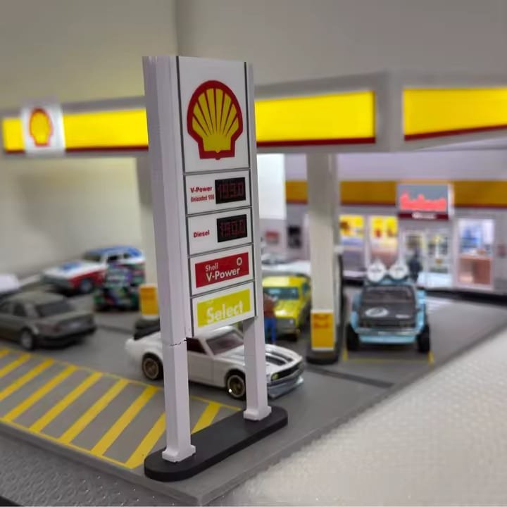 Cette station de service 1/64 pour diorama reproduit avec un réalisme saisissant l’atmosphère d’une station-service moderne.