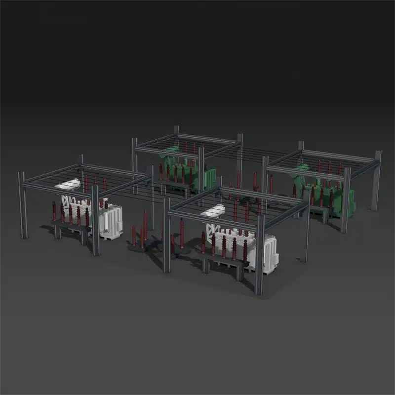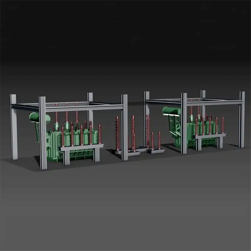 Chaque détail compte : les structures métalliques grises sont finement modelées, les isolateurs et équipements techniques parfaitement proportionnés, et les finitions soignées donnent une authenticité remarquable à l’ensemble.