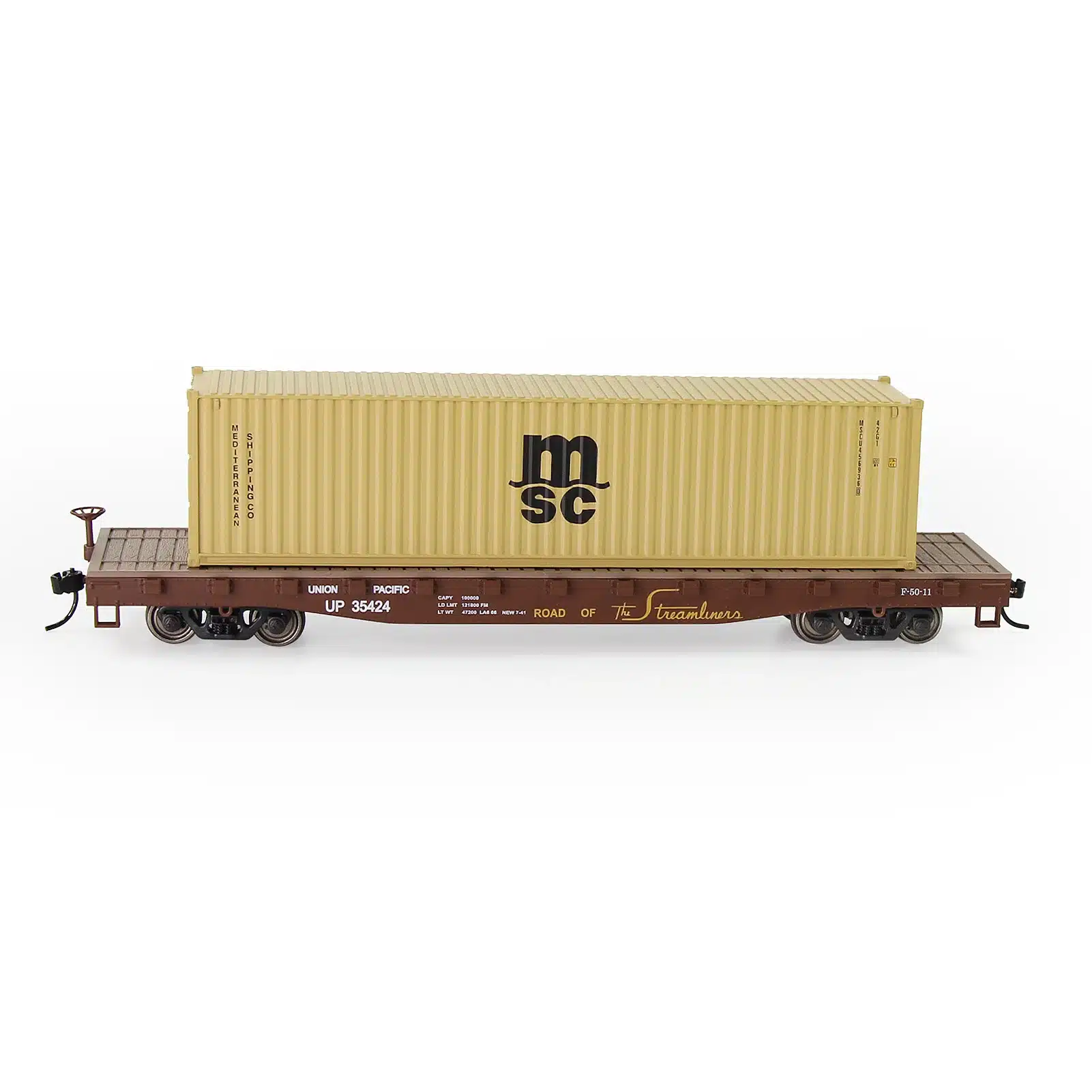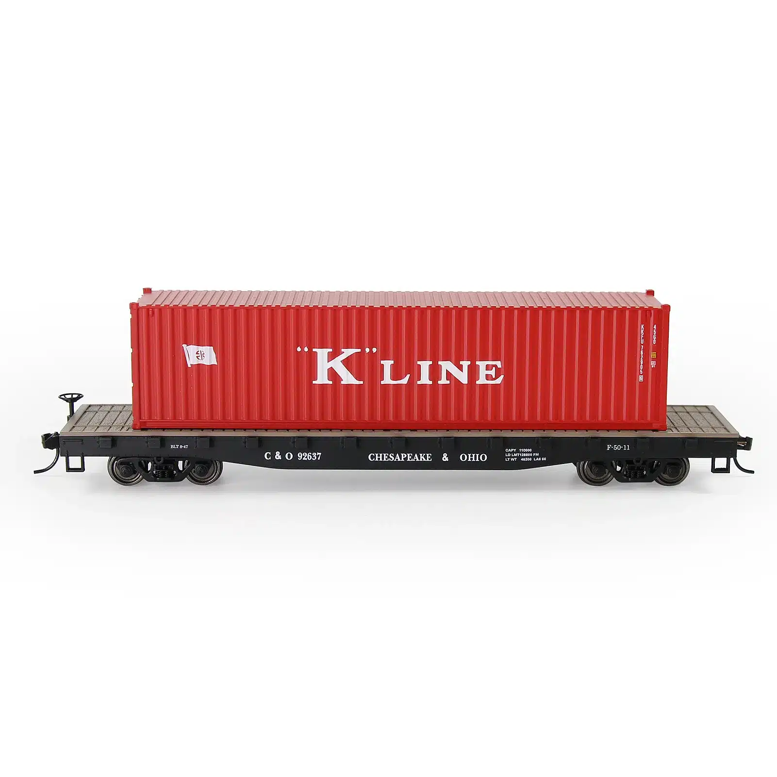 L’assemblage de plusieurs wagons porte-conteneur HO permet de reconstituer de longs convois marchands avec une précision remarquable. La variété des conteneurs transportés reflète la réalité du transport ferroviaire contemporain.